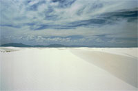 Am Rande der Rocky Mountains macht sich in der Ebene eine Dünenladschaft aus weißem Sand breit. Das Gebiet ringsum ist ein Raketenversuchsgelände, aus dem ein Teil als National Monument zum Schutz der Dünen abgerenzt ist.