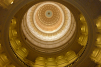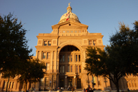 Als wir aus dem Saloon rauskommen regnet es. Der Regen bzw. Schnee-Regen war angesagt und somit nicht überraschend, trotzdem nicht besonders schön. Wir hasten zum Auto und nutzen das schlechte Wetter für einen Einkauf beim TJ Maxx, und werden glatt fündig. Ein Trolley, T-Shirts, Hose, Socken - was man halt so braucht. Abendessen gabs beim Texas Roadhouse, lecker Steak mit Ofenkartoffel. Anschließend noch für ein Bier beim Hardrock Cafe vorbei und zurück zum Motel, schon waren die nächsten 45 mi auf dem Tacho drauf. Aber Entfernungen sind hier relativ, war eigentlich nicht weit ;-) 12. Tag: Dallas - Austin Das Hotel war ganz nett, wir schlafen aus und machen uns, nach dem Frühstück, auf den Weg nach Austin. Die Verkehrsführung in Dallas ist schwierig, haben wir uns doch die letzten Tage ein paar mal verfahren. Ich bin absolut froh um mein kleines GPS-Gerät, das uns den Weg durch die Wirren zeigt. Unterwegs halten wir noch an einem Outlet und stürmen den Tomy Hilfiger Laden. Zu den normal niedrigeren Preisen ist hier noch alles um 50% reduziert, so dass ich mir nochmals 3 T-Shirts auflade. Aber wenns so billig ist ... In Austin angekommen beziehen wir zuerst unser Quartier. Ich habe einen günstigen Preis beim Hyatt entdeckt und der Unterschied zu den anderen Motels, in denen wir sonst übernachten, ist direkt seh- und fühlbar. Neben einer deutlich schöneren und hochwertigeren Einrichtung ist hier alles noch akkurater und besser in Schuss gehalten. Das Capitol in Austin ist riesig und aus einem rosa Sandstein aufgebaut. Umringt von einem Park tummeln sich auch eine Menge Menschen herum, die das Prachtwerk, das sich die Texaner errichtet haben, bestaunen. Von innen wirkt die Kuppel noch gigantischer, an den Wänden sind die Portraits der Senatoren aufgehängt. Auch hier finden wir den George W. Bush wieder, der vor seiner Präsidentschaft hier Senator von Texas war.