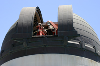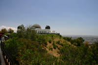 Wir gönnen uns noch einen Apfel aufs Haus und drehen eine Runde auf dem Rodeo Drive. Viele Touristen drehen hier ihre Kreise, die Läden, oder besser Boutiquen, sind nur vom feinsten und nur mit Designerwahre ausgestattet. Ob hier wohl echt die Prominenz einkauft ? Teuer genug ist es ja schon. Über den Hollywood Bvld geht es weiter in den Grifith Park. Im Grifith Park ist die Hölle los. Na ja, es ist Samstag, und die Missionen von Einwohnern von Los Angeles machen halt auch gerne einen Ausflug ins Grüne. Wir schlängeln uns vorbei an unzähligen parkenden Autos hinauf zum Observatorium mit seinem überfüllten Parkplatz. Deshalb haben die vielen Anderen die Straßen hinunter geparkt. Aber man kann ja auch mal Glück haben, gerade fährt an vorderster Front einer weg und macht uns den besten Parkplatz hier oben frei, und unter neidischen Blicken parken wir unser Auto in die vorderste Front.