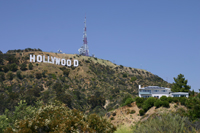 Wir fahren durch die Hollywood Hills auf engen Sträßchen steile Serpentinen hinauf. Unser Ziel ist das Hollywood Zeichen, dank Navi sollten wir den Weg durch den Irrgarten finden können. Doch auf halber Strecke ist Schluss, die Straße hinauf ist verschlossen. Offensichtlich sind wir aber nicht die einzigen, hier steht schon eine Meute und macht Bilder. Näher kommen wir nicht ran.