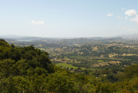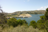 Hinter Santa Barbara zweigt der Hwy 154 über die Berge hinweg ab. Dem folgen wir, anstatt weiter an der Küste zu bleiben. Die Straße führt hinauf bis auf knapp 500 m Höhe, um nach dem Pass wieder auf eine Hochebene abzufallen. Hier besteht das Land aus Farmland, weite, gelbe Wiesen mit vereinzelten Bäumen, dazwischen immer Wieder Hügel und Felsen. Wir zweigen in Los Oliven ab zur Ne verland Ranch, der Farm von Michael Jackson. Doch wie erwartet sieht man nichts, die Ranch ist abgeschottet hinter Berghängen, nur das verschlossene Einfahrtstor ist ersichtlich - mit den entsprechenden Hiterlassenschaften seiner Fans. War eigentlich so zu erwarten, aber ein Versuch war´s Wert.