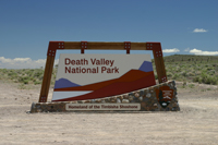 9. Tag: Von Lone Pine ins Death Valley Die Nacht war kurz. Das erste mal bin ich so gegen 1:30 Uhr aufgewacht. Das Zelt war hell erleuchtet, und ich mache mich auf nach draußen um mich des verwerteten Biers zu entledigen. Auch die Umgebung war in einem hellen, gelblichen Licht getauft: Vollmond. Noch nie ist mir der Mond so hell vorgekommen wie hier, Lampen sind absolut überflüssig. Dank der Kälte verziehe ich mich aber so schnell wie möglich wieder ins Zelt in meinen Schlafsack. Um 6:00 Uhr bin ich wieder wach und der ganze Rücken tut mir weh. So schön Campen auch ist, so richtig bequem sind diese Isomatten nicht - auch nicht die komfortable Basecamp. Und so bin ich auch froh, dass ich mich aus den Federn schwingen und einen Kaffee genießen kann. Das Wasser kocht mit Hilfe des Benzinkochers ruck zuck, jetzt noch schnell einen Espresso gemacht, auf eine Packung Instand-Kaba geleert, mit heißen Wasser aufgefüllt und der Morgen kann beginnen. Bis die Campingsachen im Auto verstaut sind ist es 9:30 Uhr und wir machen uns auf zum Mt. Whitney Portal. Nicht dass wir den Mt. Whitney besteigen wollten - geht ja mit meinem Elefantenfuss nicht - aber von hier oben hat man eine gigantische Aussicht über die Ebene und die Berge, die dann die 4000er Marke übersteigen. Hier oben wird auch überall vor Bären gewarnt, alle Autos, in denen sich Lebenmittel befinden, werden abgeschleppt. Zu viele schlechte Erfahrungen mit zerstörten Autos.