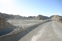 Gegen Abend fahren wir nochmals los zum Zabrisky Point, durchfahren aber vorher noch den 20 Mule Team Canyon. Der Track durch den Canyon ist eine Schotterpiste, laut Plan aber auch für normale Pkw befahrbar. Ich denke schon, dass es durchaus machbar ist, den Canyon mit einem Pkw zu durchfahren, an vielen Stellen wird man aber keinen Spass haben. Steil geht es hinauf und der Untergrund ist ausgewaschen und lose und befürwortet Bodenfreiheit und Allradantrieb.