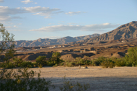 Wir kommen vorbei Stovepipe Wells, hier hatten wir das letzte mal gezeltet und auch mit Andy hatten wir bereits 1995 hier unser Lager aufgeschlagen. Heute ist der Campground geschlossen, ist nur von Mitte Oktober bis Mitte April geöffnet. Also gehts weiter nach Furnace Creek, dem Campground neben dem Visitor Center. Nach einer kompletten Platzumrundung haben wir auch die Campsite unserer Wahl gefunden, bauen kurz das Zelt auf und genießen die Ruhe und Hitze im Schatten und freuen uns über den leichten Luftzeug, der die Hitze sehr gut erträglich macht. Nach all der letzten Zeit mit dem kalten Wetter, in Deutschland aber auch hier, tut es richtig gut, nur dazusitzen und leicht schwitzen zu können. Fast hatten wir schon vergessen, wie das geht.