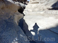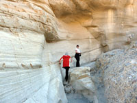 Im Death Valley habe ich uns in den Mosaik Canyon gezwungen, nachdem ich die Gruppe vor die Wahl zwischen Spaziergang durch den Canyon oder eine kleine Offroad Tour gestellt habe. Aber der Canyon kann schon begeistern: Tief eingeschnitten, teilweise mit engen Stellen und vielschichtigen Farbschattierungen. Es ist zwar noch lange kein Slotcanyon, trotzdem schön zu durchlaufen und die Stille zu genießen.