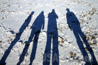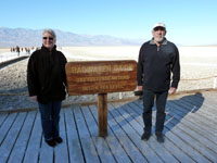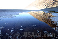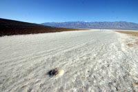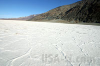 Weiter gehts nah Badwater, dem mit 85,5m unter Null tiefsten Punkt im Death Valley. Auch hier gehen wir auf der Salzspur hinaus, die ausssieht, als wäre der Boden vereist. Das Wasser ist hier komplett anders verdunstet und hat eine weiße Ebene hinterlassen, die aber keineswegs so glatt ist, wie die Salzebene bei Salt Lake City - hier ließen sich keine Geschwindigkeitsrekorde aufstellen. Wir sind auch nicht alleine, neben ein paar weiteren Autos hält dann auch ein Bus mit Chinesen - und schon ist es mit der Ruhe vorbei. In gewohnter Art udn Weise schnattert und brüllt das Folk die Stille davon, und wir machen uns auf den Weg zum nächsten Punkt und freuen uns, dass wir nicht in einer Bus (Tor) tour unterwegs sein müssen. Generell fällt auf, dass außer uns fast nur Chinesen oder andere Asiaten unterwegs sind.
