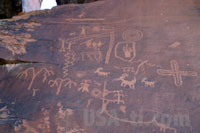 Im Luxor, unserem Hotel, haben wir dann auch das Dinner am Buffet genossen. Essen war lecker, wenngleich dei Qualität seit vor eineinhalb Jahren abgenommen hat. Das nächste mal vielleicht do in ein anderes Hotel? Der Strip ist fast menschenleer, ein Tribut an Winter und die Vorweihnachtszeit. Ein Taxifahrer sagt uns, dass Las Vegas an Weihnachten praktisch eine Ghost Town sei. Trotzdem laufen die ganzen Attraktionen: Das Wasserspiel im Belagio und der Vulkanausbruch im Mirage. Das Venetian verzückt mit Markusplatz und uns tun mittlerweile die Füße weh. Mit dem Taxi gehts zum Absacker ins Hofbräuhaus, doch daraus wird leider auch nichts mehr. Es ist 11:00 Uhr und der Wirt hat gerade abgeschlossen. Also zurück zum Hotel und noch ein paar Groschen verzocken ... 6. Tag: Von Las Vegas über Hoover Dam, Valley of Fire SP nach St George Nach dem Besuch des IHOP (International House Of Pancakes) und den üblichen Eiern mit Speck, Omeltt und gefüllten Crepes gehts zum Hoover Dam. Der neue Highway mit zweispuriger Brücke ist mittlerweile fertig und wir haben auch direkt den Abzweig zum Hoover Dam hinunter verpasst. Am Hoover Dam habe ich meine Mitfahrer aussteigen lassen und bin zum Wenden auf die andere Seite gefahren. Um den Fussgängern genügend Zeit einzuräumen habe ich mir einen Parkplatz gesucht - und dann einen noch besseren entdeckt. Ich bin direkt auf der linken Straßenseite mit dem halben Auto auf dem Standstreifen die 10 Meter zum Parkplatz gefahren, doch schien dem entgegenkommenden Auto die restlichen 15 Meter Straßenbreite zu eng zu sein. Mit Dauerhupen und einer Frau auf dem Beifahrersitz, die sich vor Entsetzen den Kopf mit beiden Händen halten musste und mit weit aufgerissenen Augen und Todesschrei in Sekundenbruchteilen ihre letzten Jahre durchlebt hat, hat es der gekonnte Fahrer doch noch geschaft, an mir vorbei zu fahren. Die sollten mal nach China kommen ...