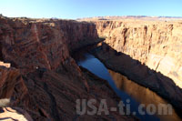 9. Tag: Rund um Page 1 - Antelope Canyon, Horseshoe Bend und Marble Canyon Der Tag beginnt wie immer mit einer Dusche, oder auch nicht. Wasser rauscht zwar durch den unteren Hahn, lässt sich auch wunderbar in Temperatur und Menge regulieren, nur der blöde Stöpsel, den man ziehen muss, um das Wasser in die Brause umzuleiten, bewegt sich keinen Millimeter. Also fällt die Dusche spontan aus. Wir fahren die Overlooks rund um den Damm ab und bewundern die Wunderwerke, zum einen der Technik und Baukunst, zum anderen die des Colorados, der in Jahrmillionen senkrechte Felswände, hunderte Meter tief in den Stein gesägt hat.