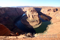 Wir fahren noch zum Horseshoe Bend und wagen einen Blick in die Tiefe Schlucht, die der Colorado in Hufeisenform ausgeschnitten hat. Hier wimmelt es von Chinesischen Touristen, die sich leider sehr landestypisch mit lautem Geschrei benehmen. Ich flüchte mich, natürlich nach den Fotos, zum einen Rand des Canyons und entfliehe dem Lärm der Horde. Die Stille ist zwar nicht perfekt, aber deutlich besser.