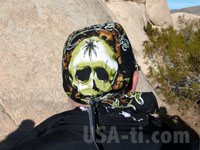 Wir fahren erst mal zurück zum Motel, um das Auto dort abzustellen und erten Fahrübungen ohne "Mitfaherer" hinten auf der Maschine zu unternehmen. Der Sound ist echt super, und gegenüber meiner Changyang mit 26 PS und Kardanantrieb und sonstiger Technik von 1936 gehen die Teile ab wie nur was. Die "Mädeels" hinten auf der Maschine geht es also in Richtung Joshua Tree NP. Nach bereits 30 km durchfahren wir den Box Canyon, eine fahrenswerte Straße zwischen Mecca und dem Park, kurvig durch einen Wüstencanyon und das erste wirklich sehenswerte Stück unserer Tour.