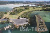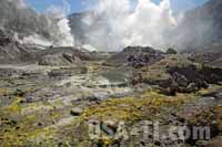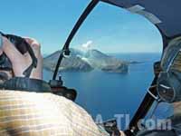 7. Tag: Rotorua Wir lassen den Tag langsam angehen. Leider konnte ich das Motel nicht nochmal verlängern, so dass wir unser Zimmer räumen und uns dann zum Frühstück aufmachen. Dank eines Telefonats vom Vortag nutzen wir den gesamten Vormittag, um unsere Zukunft zu diskutieren. Wir sind pünktlich beim Lake und am Stand von unserem Heli-Provider. Die Bude ist komplett überfüllt mit einem Rudel Chinesen, die sich lautstark unterhalten. Wir lernen unsere Pilotin kennen und erfahren zudem, dass wir mit dem kleinen Helikopter, einem 3-Sitzer unterwegs sein werden und nicht, wie gestern noch erfahen, im großen mit 2 weiteren Passagieren - super !!! Der Flug über and und Vulkane und dann noch übers Meer ist ein Erlebnis mit tollen Aussichten, der Höhepunkt bildet dann der Anflug auf White Island mit Landung. White Island ist eine Vulkaninsel, die noch immer sehr aktiv ist. Im 19. Jahrhundert wurde hier auf der Insel eine Schwefelmine installiert, die mehrmals geschlossen wurde um im 20. Jahrhundert bei einer Erruption alle Arbeiter umgekommen sind. Heute sind nur noch Ruinen übrig, die Zerstörung kommt aber nicht von der Eruption, sondern von den ständigen Schwefeldämpfen und der dadurch geförderten Korrosion.