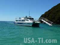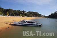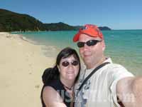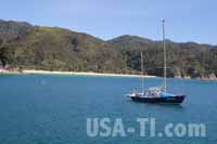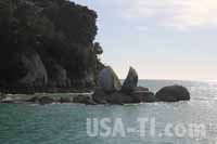 Auf dem Oberdeck im Freien schieße ich hunderte Bilder vom Hafen, der Stadt, der Mündung, den Inseln, den Bergen, der Küste und auf der Südinsel das selbe in umgekehrter Reihenfolge - war aber auch interessant. Die Fähre landet in Picton und wir fahren direkt weiter nach Nelson - mit dem neuen Auto, das nicht nur nicht quietscht sondern auch eine Klasse höher ist als bestellt. Und fährt auch gleich komfortaber ... Am Abend finden wir eine nette Kneipe am Hafen mit schöner Ausicht aufs Meer und genießen einen kleinen Happen. 12. Tag: Abel Tasman National Park und Fahrt nach Westport Nach einem kurzen Frühstück, wir haben unsmittlerweile an einen Tee mit Müsliriegel und einer Banane gewöhnt, machen wir uns auf zum Abel Taman National Park. Der Park ist ein Gebiet rund um einen wunderschönen Küstenabschnitt, bedeckt mit Regenwald und einer sagenhaften Steilküste mit vielen Felsen, dazwischen immer wieder tolle Buchten und Strände.