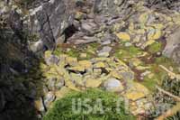 Vom Parkplatz bis zur Robben Kolonie führt ein schön angelegter Weg, der auf einer Aussichtsplattform oberhalb der Kolonie. Von den USA her kennend haben wir einen Strand erwartet, auf dem sich die Kolosse tümmeln. Doch hier liegen die Giganten auf Felsen, ganz oben auf und sonnen sich. Einige machen sich hinab ins Wasser und sprichen von Fels zu Fels, um dann in einem Satz in die nächste Brandungswoge zu springen. Wer hötte gedacht, dass diese Tiere so behende sind.
