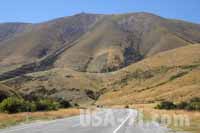 17. Tag: Von Wanaka nach Methven Die nächste Nacht haben wir in Methven gebucht. Eigentlich wollten wir in Christchurch übernachten, aber alle über das Internet verfügbaren Hotels und Motels waren ausgebucht. Was so viele Leute dort wohl wollen? Nach dem Erdbeben vor 3 oder 4 Jahren ist die anscheinend sehenswerte Innenstadt weitgehend zerstört, und ansonsten sind die neuseeländischen Städte nicht unbedingt die Touristenmagnete, die man unbedingt besichtigen muss. Für uns wäre es nur der sinnvollste Zwischenstopp auf dem Weg zurück nach Picton und der Fähre zur Nordinsel. Auf dem Weg zum Mt Cook, dem mit über 3750m höchstem Berg von Neuseeland, fahren wir durch eine landschaftliche Kopie von Schottland. Sanfte bis schroffe Hügel, mit Gras bewachsen und von Schafen abgeweidet und immer wieder Täler mit klaren Gebirgsbächen. Nur die Temperaturen hier sind mit 26 - 28°C deutlich angenehmer.